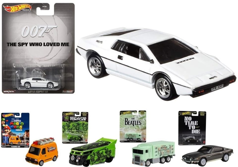 W kolekcji znalazły się takie perełki jak Lotus Esprit S1 Jamesa Bonda z filmu The Spy Who Loved Me, czarny Aston Martin DB5 z No Time To Die, kultowy Plumbers Van z filmu Super Mario Bros, pojazd z uniwersum Ninja Turtles, ciężarówka inspirowana zespołem The Beatles oraz inne wyjątkowe modele.