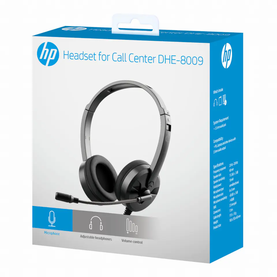 HP DHE-8009 słuchawki z mikrofonem, przewodowa, czarna, klasyczna typ 3,5mm jack