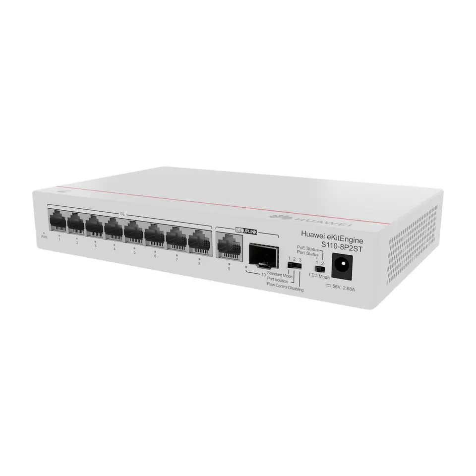 HUAWEI SWITCH S110-8P2ST 8*GE PORTS (124W POE+), 1*GE SFP PORT, 1*GE PORT, AC POWER, POWER ADAPTER