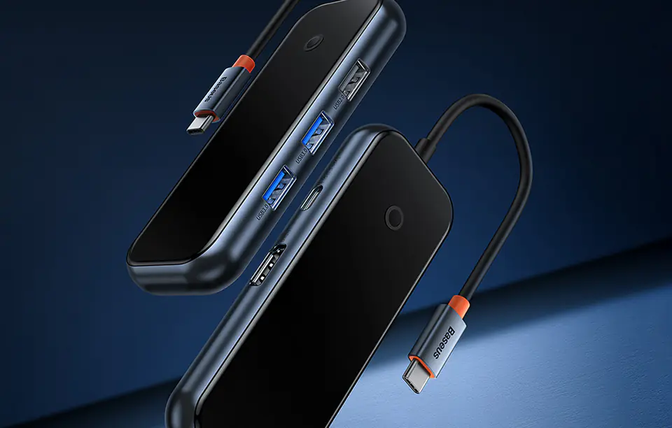 Hub 5w1 Baseus AcmeJoy series USB-C do 2xUSB 3.0 + USB 2.0 + USB-C PD + HDMI szary