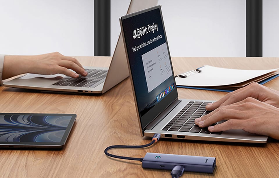 Teraz z łatwością zaprezentujesz swoim współpracownikom przygotowaną prezentację na spotkaniu czy obejrzysz film na dużym ekranie w domowym zaciszu! Hub marki Baseus został wyposażony w port HDMI, który oferuje rozdzielczość 4K@60Hz. Ciesz się doskonałym odwzorowaniem kolorów i niesamowitym bogactwem szczegółów! Co więcej, urządzenie posiada specjalny przycisk, który pozwoli Ci błyskawicznie zakończyć udostępnienie ekranu.