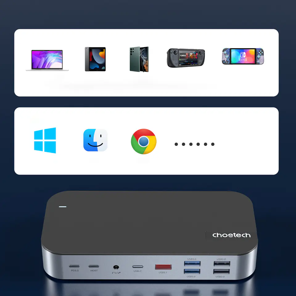 Kod produktu: 1021357HUB-M52 marki Choetech rozwiąże problem małej ilość standardowych złączy USB. Wielofunkcyjny HUB to również szereg innych wygodnych rozwiązań, mających za zadanie ułatwić pracę przy z komputerze. HUB ma nie tylko ciekawy design i świetną jakość wykonania. Przykuwa uwagę, jednak przede wszystkim jest wysoce funkcjonalny. Gadżet od marki Choetech pozwoli na w pełni swobodną pracę lub zabawę. Wszystko dzięki dużej liczbie dostępnych portów oraz gniazd. Nowe laptopy często nie mają gniazda RJ45, które dla graczy jest dość istotnym elementem. Dzięki HUBowi Choetech nie trzeba się martwić jego brakiem. Dodatkowo znajduje się w nim czytnik kard SD oraz TF.Najważniejsze cechy: