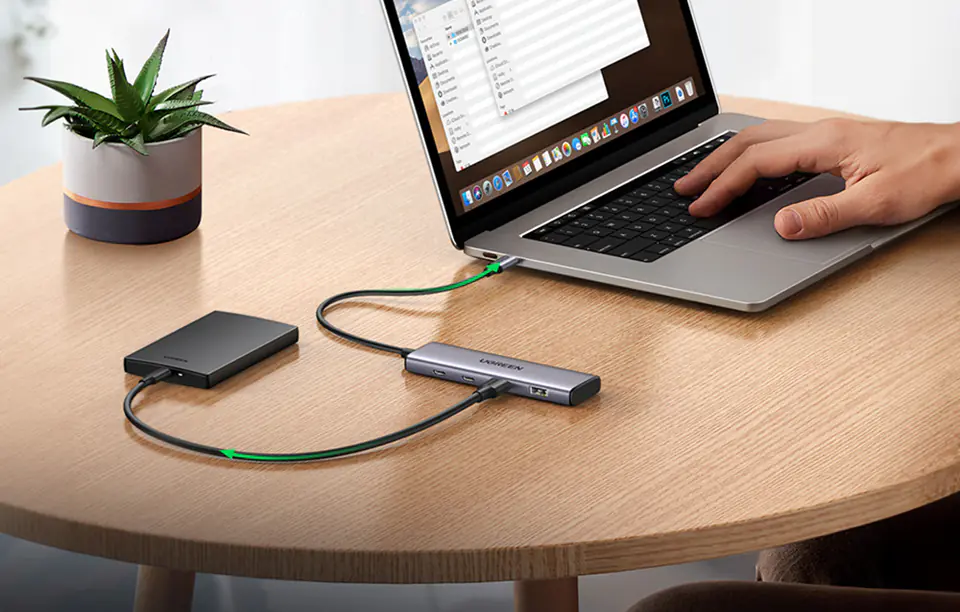 Kod produktu: 1021338Twój laptop lub komputer nie mają wystarczającej ilości portów, z których mógłbyś korzystać podczas codziennej pracy lub w trakcie rozrywki? Brakuje Ci dodatkowych gniazd o zróżnicowanym standardzie? Jeżeli tak, to gadżet od marki Ugreen jest idealny dla Ciebie. Jedno urządzenie zapewni Ci szereg dodatkowych portów, z których będziesz mógł bez przeszkód korzystać. To sprawi, że odkryjesz nowe możliwości swojego komputera.Najważniejsze cechy: