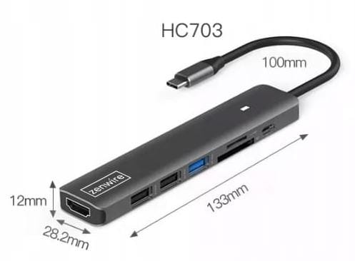 HUB ADAPTER USB-C 7w1 HDMI 4K USB 3.0 SD PD Zenwire BS-HC703