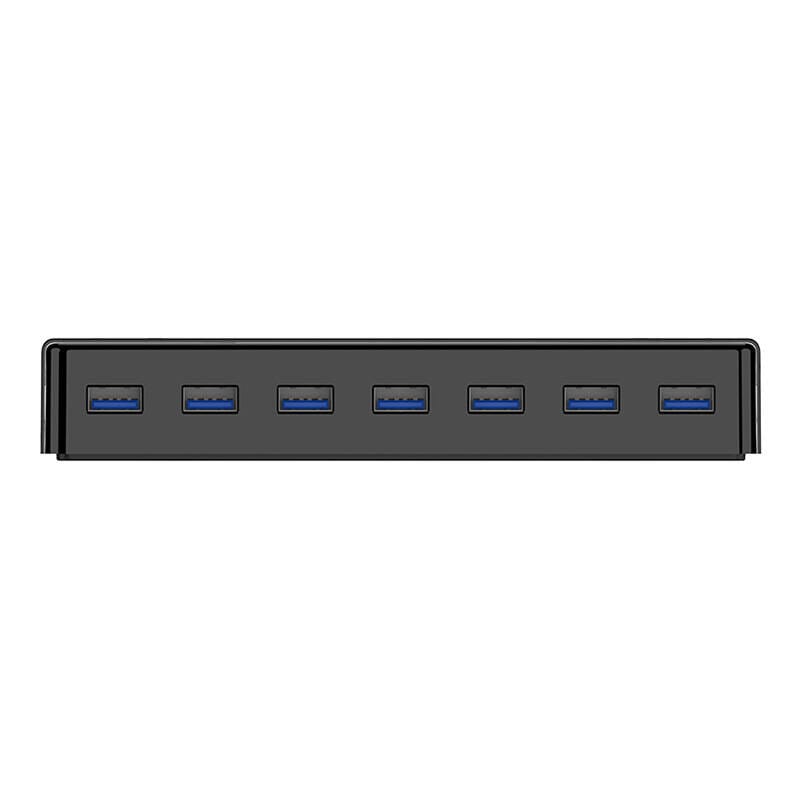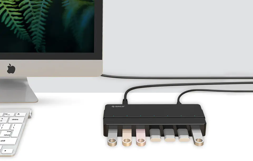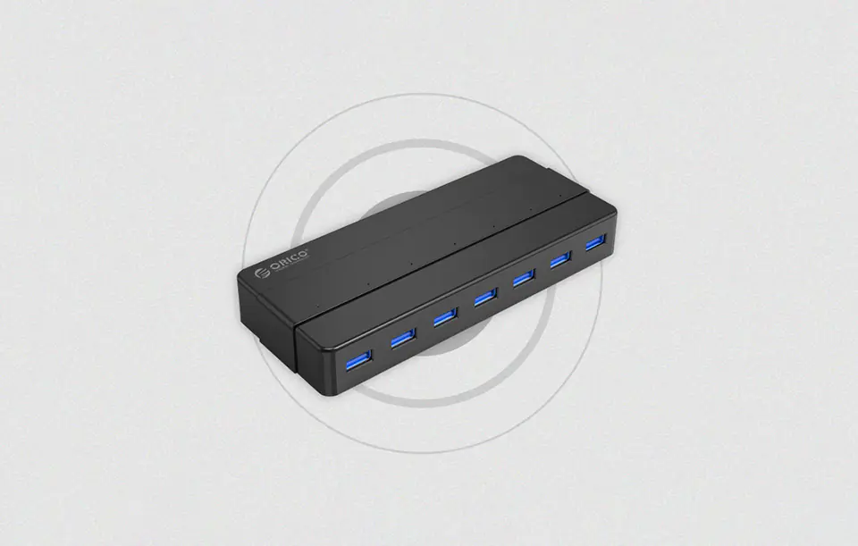 Zyskaj aż 7 dodatkowych portów USB 3.0 i ułatw sobie życie. Praktyczny hub marki Orico umożliwia transfer danych z prędkością do 5 Gbps i jest kompatybilny z wieloma różnymi urządzeniami. Za niezawodną pracę produktu odpowiadają 2-rdzeniowy chip VIA oraz źródło zasilania 12 V. Odłączany kabel USB zapewnia większą swobodę użytkowania produktu, a wbudowane wskaźniki LED informują o jego statusie.