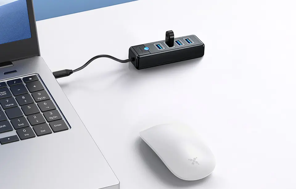 Zwiększ możliwości swojego komputera. Adapter został wyposażony w 4 porty USB, do których możesz podłączyć na przykład pamięć przenośną, mysz lub klawiaturę. Zaawansowany chip zapewnia stabilne połączenie między urządzeniami – zapomnij o opóźnieniach! Ponadto dzięki wysokiej mocy hub może obsłużyć nawet 2 dyski SSD 2,5" o pojemności 1 TB jednocześnie.