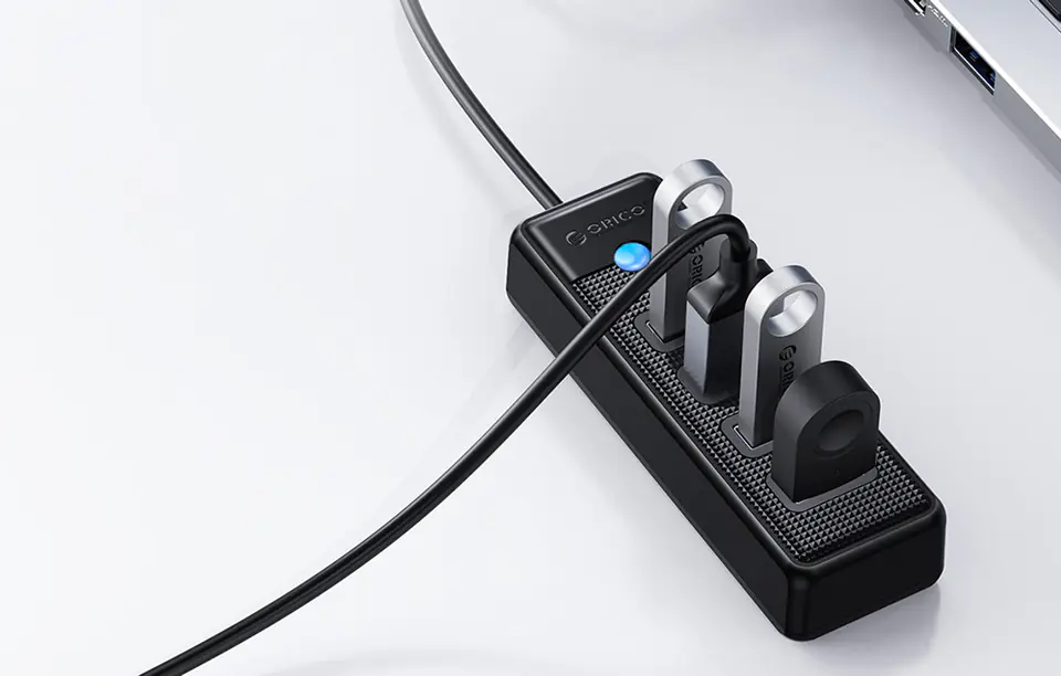 Twój komputer ma za mało portów? Hub Orico PW4U-C3-015-BK-EP pomoże Ci zwiększyć jego możliwości! Urządzenie zostało wyposażone w 4 porty USB3.0 i umożliwia przesyłanie plików z prędkością do 5 Gbps. Z powodzeniem podłączysz do niego nawet 2 dyski twarde, mysz czy klawiaturę. Adapter jest też wyjątkowo wytrzymały – będzie świetnie Ci służyć przez długi czas.