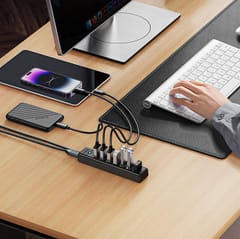 Kod produktu: 1027737Hub Orico PW7U-U3 to idealne rozwiązanie dla wszystkich, którzy potrzebują więcej portów USB do podłączenia urządzeń peryferyjnych. Dzięki aż 7 portom USB 3.0 zapewnia wysoką wydajność i błyskawiczny transfer danych do 5 Gbps. Solidna konstrukcja z wytrzymałego tworzywa ABS, wsparcie dla różnych systemów operacyjnych oraz dodatkowy port zasilania USB-C sprawiają, że jest to doskonały wybór zarówno do pracy biurowej, jak i domowego centrum multimedialnego. Koniec z ciągłym przepinaniem urządzeń - teraz możesz podłączyć wszystko jednocześnie!7 portów USB 3.0 - koniec z ograniczeniamiOrico PW7U-U3 pozwala na jednoczesne podłączenie do 7 urządzeń, eliminując konieczność ciągłego przepinania kabli. To idealne rozwiązanie do biura i domu.Superszybki transfer danych 5GbpsDzięki technologii USB 3.0, hub oferuje prędkość transferu do 5 Gbps, co pozwala na szybkie przesyłanie dużych plików bez opóźnień.Solidna i trwała konstrukcjaWykonany z wysokiej jakości materiału ABS, hub jest odporny na uszkodzenia i zapewnia długą żywotność. Tinned pure copper wire core zwiększa stabilność transmisji.Opcjonalne zasilanie dla większej wydajnościPort USB-C 5V/3A umożliwia zasilanie zewnętrzne, co pozwala na obsługę nawet 6 dysków twardych 2,5" o pojemności 1 TB.Nowoczesny design i intuicyjna obsługaMinimalistyczny wygląd, wskaźnik LED informujący o pracy urządzenia oraz wygodne porty sprawiają, że hub świetnie komponuje się w każdym otoczeniu.Najważniejsze cechy:
