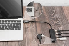 - Koncentrator USB-C 3.0 i USB A 3.0, dzięki portom USB-A i USB-C koncentrator jest kompatybilny z szeroką gamą notebooków