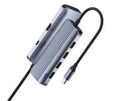Adapter UH500 umożliwia podłączenie urządzenia wyposażonego w interfejs USB-C do innych urządzeń w celu wykonania określonej funkcji w zależności od użycia dostępnego interfejsu wyjścia