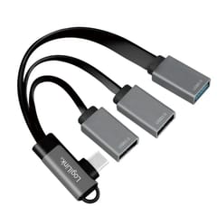 Hub USB 3.2, USB-C/M 90, do 3xUSB-A/F, 0.15m