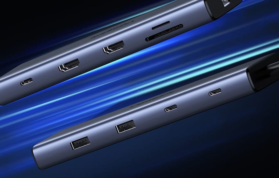 Ugreen CM639 to wszechstronny hub USB-C 10 w 1, który zamienia jeden port USB-C w rozbudowane centrum podłączeń. Oferuje dwa porty HDMI z obsługą obrazu 4K@60Hz, dwa porty USB-A oraz dwa porty USB-C (w tym oba w standardzie 3.2 o prędkości do 10 Gbps), czytniki kart SD i TF, gigabitowy port RJ45 oraz port USB-C PD do ładowania z mocą do 100 W. Dzięki niemu możesz podłączyć wiele urządzeń jednocześnie, przesyłać dane w błyskawicznym tempie i korzystać z dwóch monitorów w wysokiej rozdzielczości.