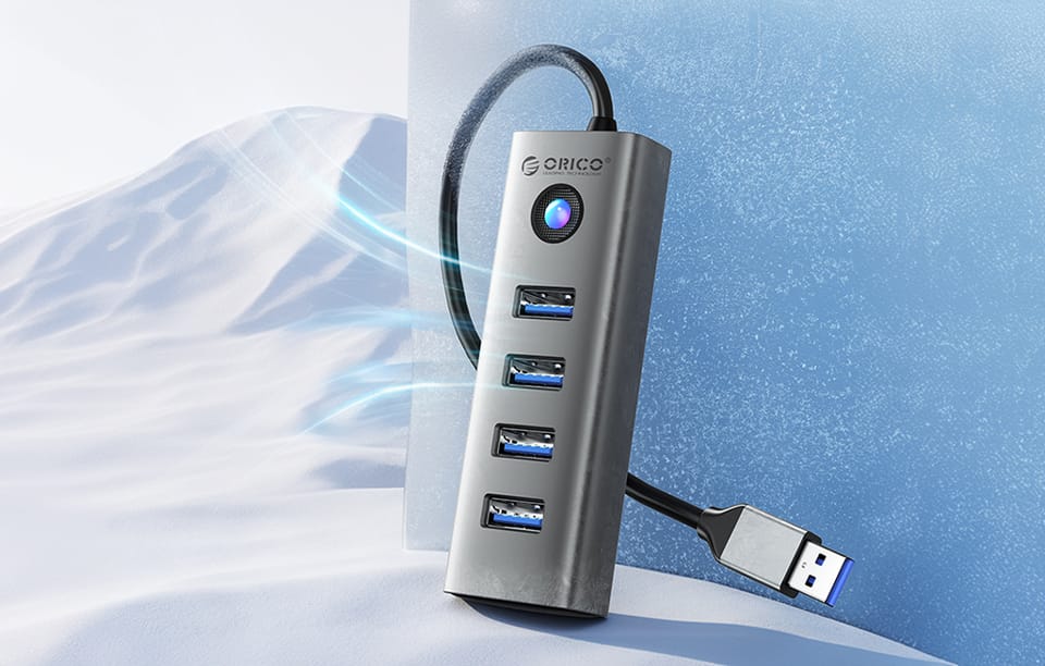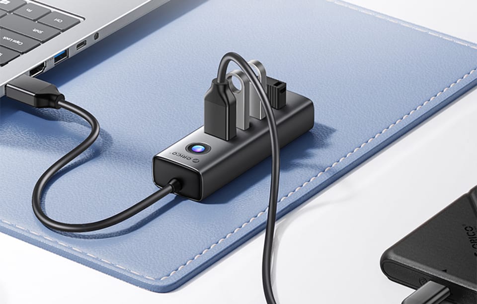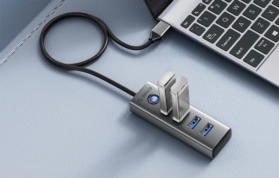 Cztery porty USB 3.0 w hubie Orico PDD4U umożliwiają jednoczesne podłączenie różnych urządzeń, takich jak klawiatura, mysz, drukarka, pendrive czy zewnętrzny dysk twardy. To sprawia, że adapter jest doskonałym rozwiązaniem dla osób, które potrzebują mieć dostęp do wielu urządzeń jednocześnie.