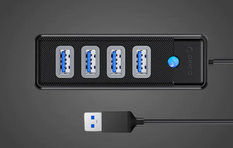 Twój komputer ma za mało portów? Hub Orico PW4U-U3-015-BK-EP pomoże Ci zwiększyć jego możliwości! Urządzenie zostało wyposażone w 4 porty USB3.0 i umożliwia przesyłanie plików z prędkością do 5 Gbps. Z powodzeniem podłączysz do niego nawet 2 dyski twarde, mysz czy klawiaturę. Adapter jest też wyjątkowo wytrzymały – będzie świetnie Ci służyć przez długi czas.