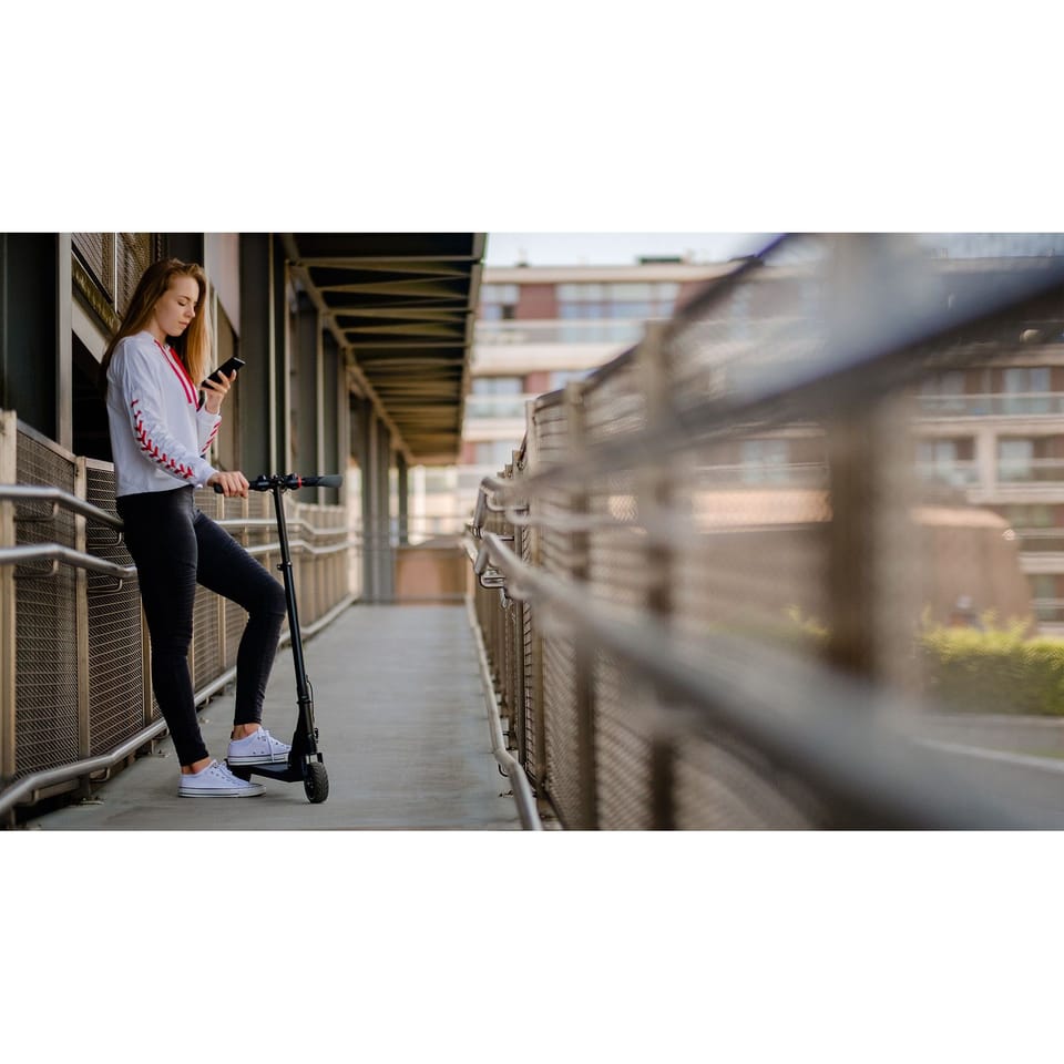 ----------Ogólne----------Moc: 250 WMaks. obciążenie: 90 kg Maks. prędkość: 15 km/h Dystans (na jednym ładowaniu): do 8 km*Maks. kąt podjazdu: 15°Stopień ochrony: IP54Wysokość podwozia: 55 mmWysokość platformy: 90 mmRozmiar przedniego koła: 5”Rozmiar tylnego koła: 5,5”Materiał: aluminiumSkładana konstrukcja----------Funkcje----------Automatyczne wyłączanieSprężyna amortyzująca wstrząsyHamulec elektrycznyHamulec nożnyPrzednie światło----------Akumulator----------Akumulator litowo-jonowyNapięcie: 25,2 VPojemność: 4,4 AhTemperatura pracy: -15°C~+50°CTemperatura przechowywania: -20°C~+25°CTemperatura ładowania: 0°C~+40°CWilgotność przechowywania: 5~95%Szacowany czas ładowania: do 180 minutŁadowarka:- Wejście: 110-240 V, 50/60 Hz- Wyjście: 29,4 V; 1,5 A----------Parametry fizyczne----------Waga netto: 7,6 kgWaga brutto: 9,5 kgWymiary (rozłożona): 900x420x(930-103) mmWymiary (złożona): 810x420x290 mm* zasięg uzależniony jest od wielu czynników; podana wartość przedstawia maksymalny zasięg bez potrzeby ponownego ładowania urządzeniaDo użytku wewnątrz/na zewnątrzW zestawie: hulajnoga, instrukcja obsługi, ładowarkaNiniejszy sprzęt może być użytkowany przez dzieci w wieku co najmniej 14 lat