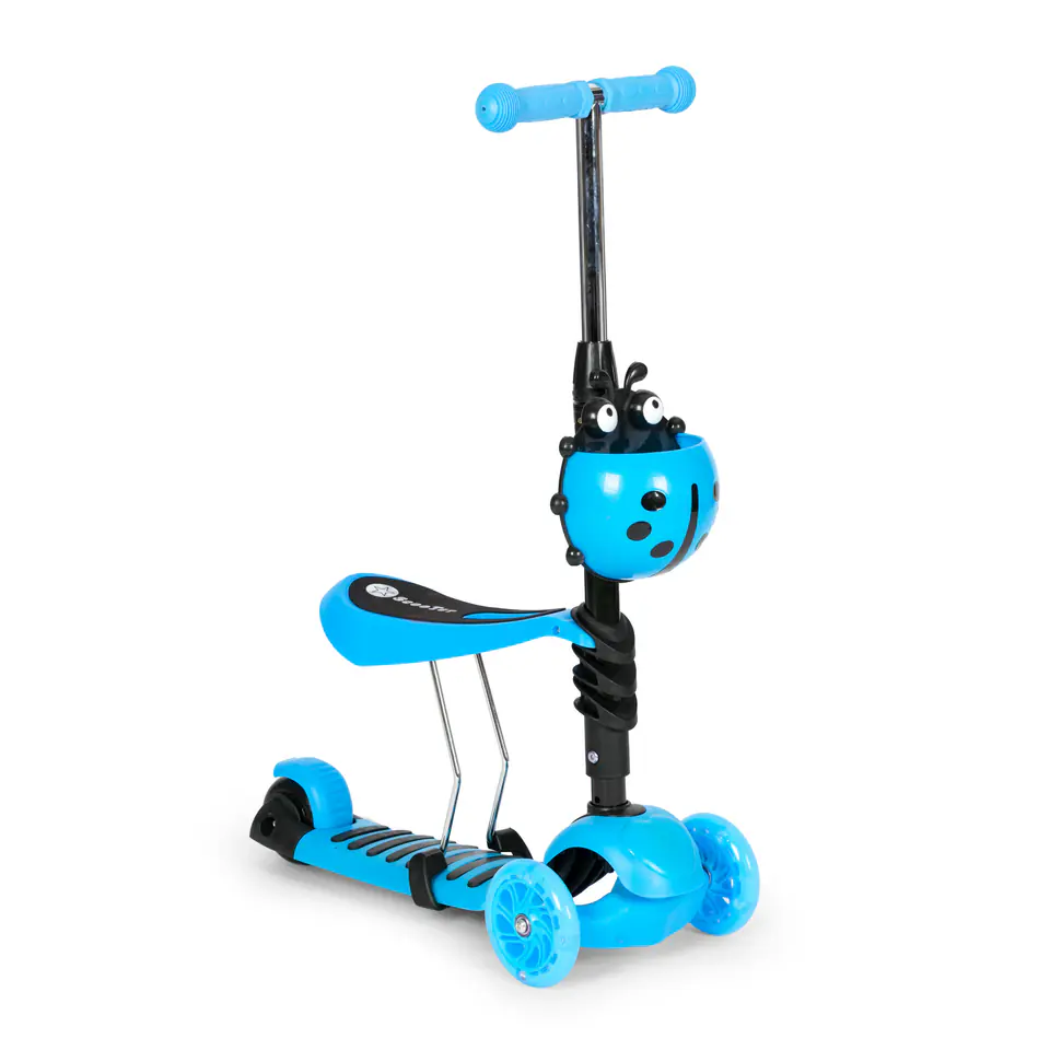 Hulajnoga została wyposażona w wygodne siedzisko, które można łatwo dostosować do wysokości dziecka. Jego wyprofilowany kształt zapewnia wygodę i swobodę ruchu podczas jazdy, szczególnie dla młodszych dzieci, które mogą czuć się bardziej pewnie siedząc na hulajnodze.