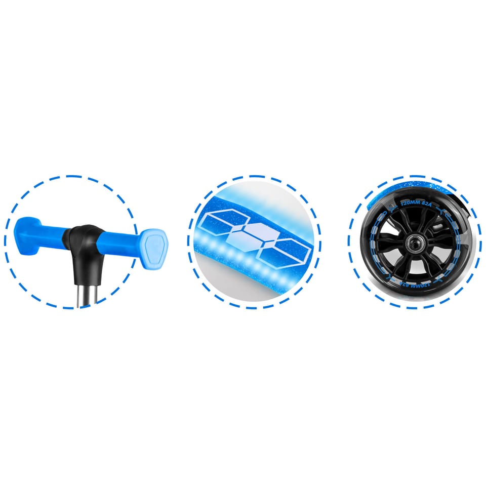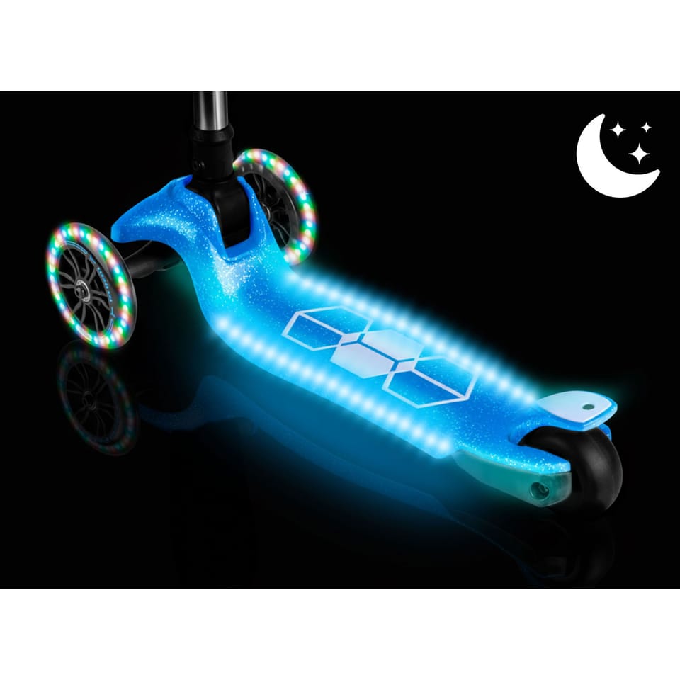 ✅ Ukryte w podeście hulajnogi panele LED oraz świecące kółka dodadzą odrobiny magii do zwykłej zabawy.
