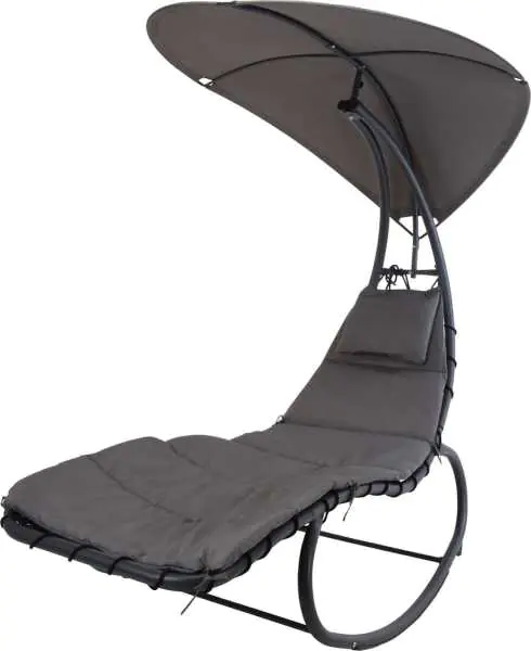 Huśtawka fotel bujany z owalnym dachem kolor szary Ciesz się wspaniałą chwilą relaksu w swoim ogrodzie lub na tarasie w tym wygodnym fotelu bujanym. Specyfikacja: Długość: 195 cm Szerokość: 90 cm Wysokość: 185 cm Maksymalne obciążenie: 100 kg Materiał: rama stalowa, pozostałe elementy poliester Kolor: szary Waga: 21 kg