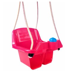 Huśtawka wykonana z wysokogatunkowego plastiku w kolorze różowym, odznacza się doskonałą trwałością i odpornością na działanie czynników zewnętrznych.