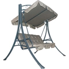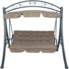 - wyposażona w duże miękkie siedziskozapewni komfort użytkowania nawet dla 3 osób zdobione ornamentami stalowe elementy stelaża nadają elegancki wyglądmaksymalne obciążenie to 300 kgszeroki daszek zadba o odpowiedni cień i obniżenie pod nim temperatury wytrzymała stalowa konstrukcja zagwarantuje bezpieczeństwo przy zachowaniu maksymalnego obciążeniaspecjalne zabezpieczenie na stopkach zapobiegnie ich wbijaniu się w ziemięw uniwersalnym kolorze