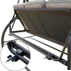 Siedzisko z funkcją rozkładania - siedzisko można rozłożyć do pozycji leżącej o wymiarach około 104,5 x 144 cm. Takie rozwiązanie umożliwia komfortowy odpoczynek i relaks w pozycji półleżącej lub leżącej. To praktyczna funkcja zwiększająca możliwości użytkowe huśtawki.