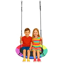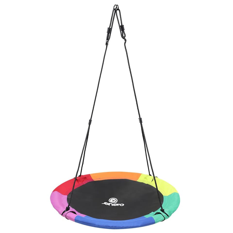 Parametry:- Wymiary: średnica huśtawki: 110 cmrurka stelaża: 25 x 0,8 mm (śr. x gr. ścianki)rura z pianką: 28 x 52 mm (śr. x gr.)sznur (2 szt.): średnica 10 mmMateriały: osłona - oxford, siedzisko - PP, stelaż - metalRegulowana wysokość w zakresie: 1,4 - 1,9 mMaksymalny udźwig: 150 kgWaga netto: 3,200 kgWaga brutto: 3,800 kgOpakowanie: 80 x 7,5 x 40 cm (karton) Kolor: wielokolorowaDeklaracja CE: takOdporny na promieniowanie UV: nieMarka: ENERO