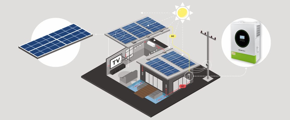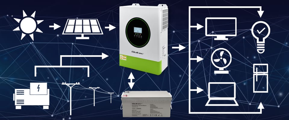 Bądź niezależny energetycznieWydajność instalacji fotowoltaicznej zależy od doboru odpowiedniego falownika, czyli inwertera solarnego. Falownik pełni kluczową funkcję w tym systemie, zmieniając prąd stały DC wytworzony przez panele fotowoltaiczne w prąd zmienny AC, wykorzystywany przez urządzenia domowe. Inwerter hybrydowy off-grid łączy instalację fotowoltaiczną, magazyn energii oraz sieć energetyczną.Do zasilania odbiorników i ładowania akumulatora wykorzystuje nadmiar energii słonecznej. Gdy produkcja energii jest większa niż aktualne zapotrzebowanie, nadmiar prądu może być przekazywany do ładowania akumulatorów LiFePO4, AGM, GEL lub magazynu energii, co umożliwia przechowywanie energii na późniejsze wykorzystanie, np. w nocy lub w dniach pochmurnych. Inwerter hybrydowy może automatycznie przełączyć się na tryb off-grid, dostarczając energię z akumulatorów. Dlaczego warto wybrać inwerter hybrydowy?