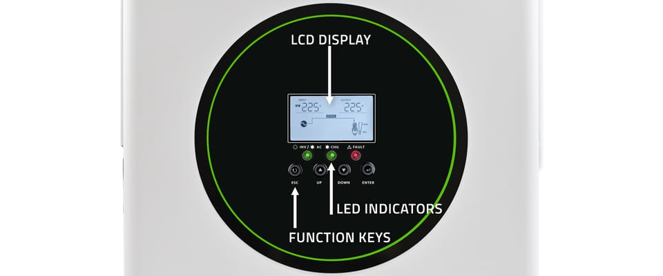 - możliwość zmiany ustawień priorytetu ładowarki AC/Solar za pomocą wyświetlacza LCD,