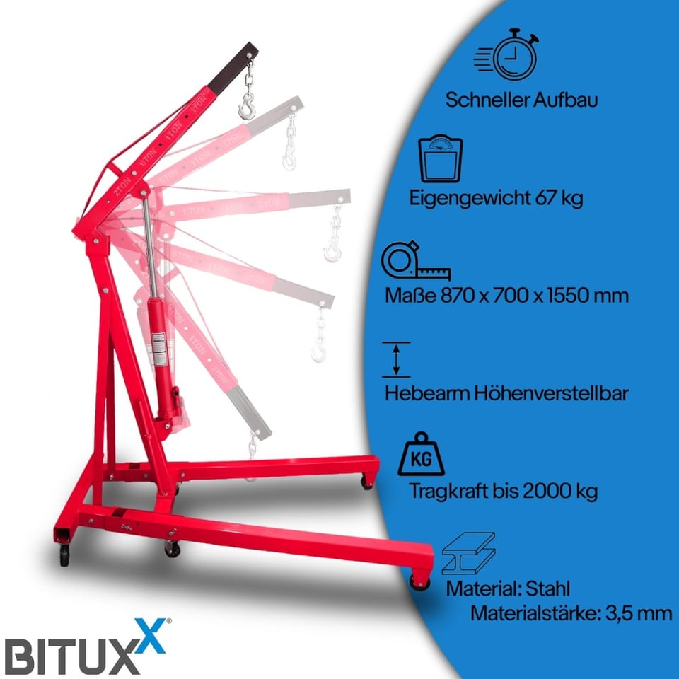HYDRAULICZNY ŻURAW WARSZTATOWY UDŹWIG DO 2 TON PODNOŚNIK SKŁADANY BITUXX