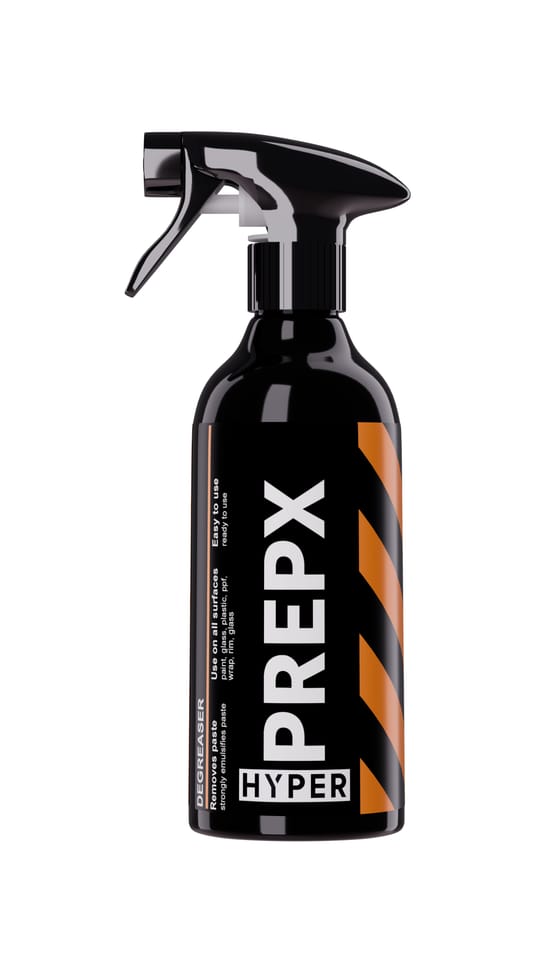 Hyper PrepX Degreaser – skuteczny, ale nie agresywny produkt do usuwania pozostałości po pastach polerskich. Zawarte składniki przygotowują lakier przed aplikacją powłok ceramicznych, wosków itp. Skuteczne odtłuszczenie pozwala zabezpieczeniom na mocne związanie z powierzchnią. Szybko odparowuje z powierzchni. Skutecznie czyści szyby i lustra.