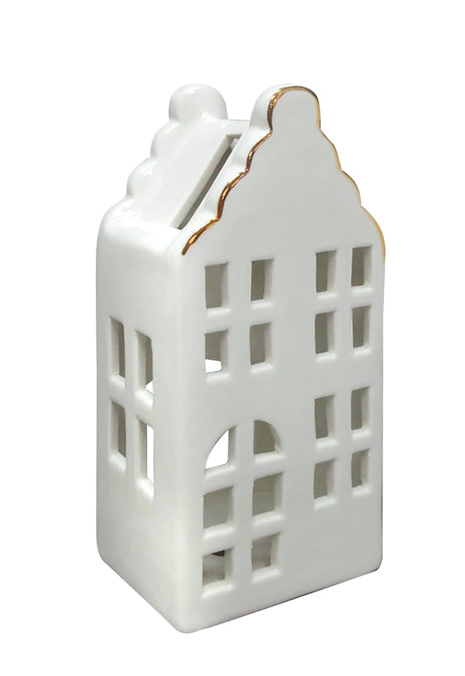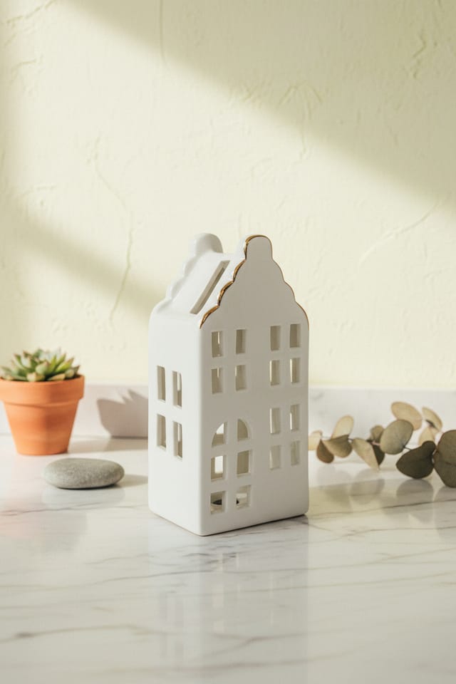 Poznaj Hytte domek lampion - wyjątkową ceramiczną ozdobę, która doda uroku każdemu wnętrzu. Wykonany z ceramiki, w klasycznym białym kolorze z subtelnymi złotymi zdobieniami, doskonale wpasuje się w różnorodne aranżacje, od nowoczesnych po rustykalne. Ten nietuzinkowy lampion, w kształcie urokliwego domku, rozświetli Twoje wnętrze ciepłym, przytulnym światłem. Idealny do ustawienia na parapecie, komodzie czy świątecznym stole, tworząc nastrojową atmosferę. Świetnie sprawdzi się również jako dekoracja na werandzie lub balkonie, wprowadzając magiczny nastrój podczas wieczornych spotkań. Może także pełnić rolę centralnego punktu dekoracyjnego podczas świąt, dodając wnętrzu wyjątkowego klimatu. Wybierz Hytte domek lampion i ciesz się jego elegancją oraz funkcjonalnością, dodając swojemu domowi wyjątkowego charakteru.Wymiary: 8*6*16.8