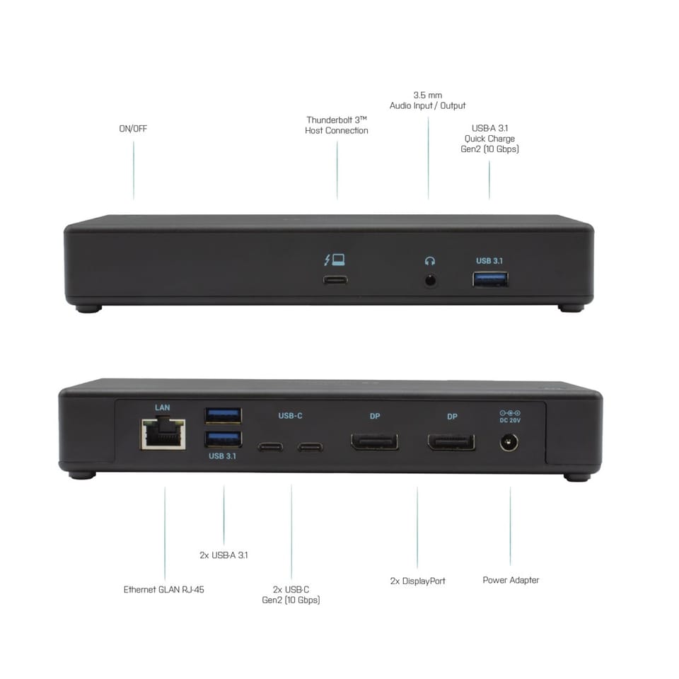Najnowsza technologia Thunderbolt 3 drugiej generacji jest już dostępna. Znakomita wydajność, ultraszybki transfer danych i obsługa rozdzielczości do 8K *. Jest to jedna z najpotężniejszych stacji dokujących dostępnych obecnie na rynku.