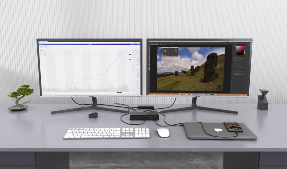 Dzięki zintegrowanemu protokołowi DP 1.4 możesz podłączyć tę stację dokującą do monitora o rozdzielczości do 8K (7680 x 4320) * z częstotliwością odświeżania 30 Hz, co jest porównywalne z czterema monitorami 4K obok siebie. Idealne rozwiązanie dla profesjonalnych grafików, analityków danych, inżynierów, montażystów filmów lub entuzjastów.
