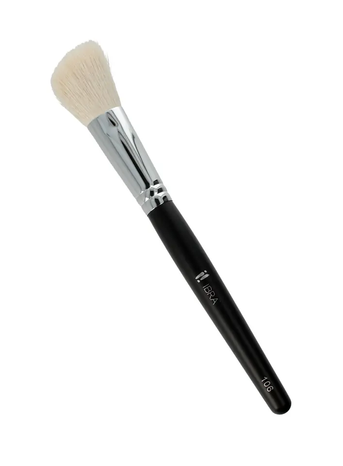 Profesjonalny pędzel do aplikacji różu wykonany z delikatnego, miękkiego, naturalnego włosia kozy w kolorze białym. Jego ścięty kształt daje precyzyjną możliwość aplikacji kosmetyków, pędzel nie gubi włosia i jest łatwy w utrzymaniu czystości.