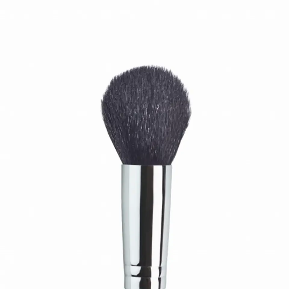 Pędzel wykonany z naturalnego włosia kozy, za pomocą którego z łatwością wykonturujesz twarz. Sprawdzi się przy aplikacji różu, bronzera i rozświetlacza. Lekko zaokrąglony kształt włosia ułatwi rozcieranie produktów. Pędzel jest bardzo starannie wykonany, dzięki czemu jest trwały i jednocześnie wygląda niesamowicie estetycznie. Włosie zamknięte jest w pięknej, srebrnej, zaokrąglonej skuwce. W połączeniu z drewnianym, solidnym trzonkiem pomalowanym na czarno tworzy piękną, elegancką całość.