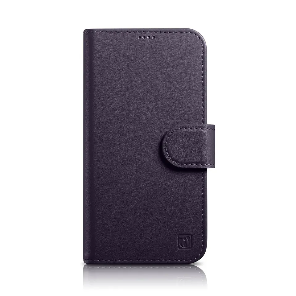 iCarer Wallet Case 2in1 etui iPhone 14 Pro skórzany pokrowiec z klapką Anti-RFID ciemnofioletowy WMI14220726-DP