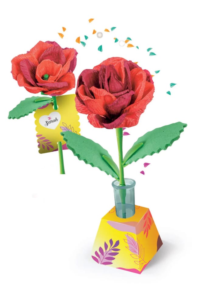 Zestaw pozwala dzieciom samodzielnie wykonać dwie papierowe róże i umieścić je w ozdobnym, personalizowanym stojaku z kartonu. Kompozycja świetnie sprawdzi się jako prezent – wystarczy dodać imię lub dedykację, aby wywołać uśmiech bliskiej osoby.