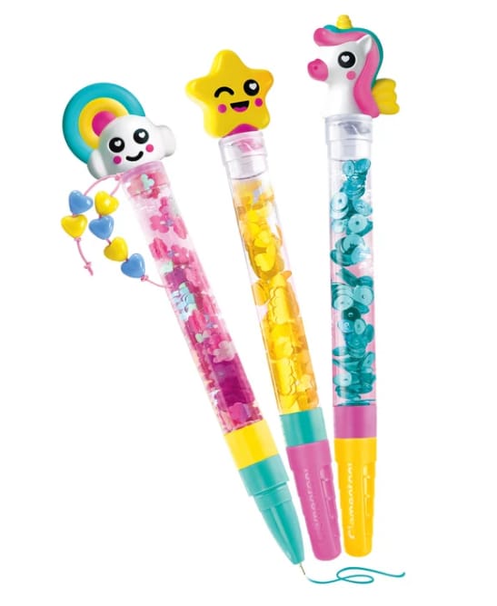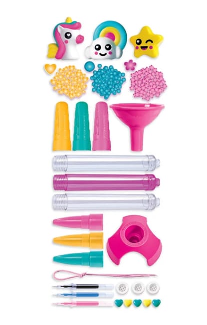 Oryginalny zestaw kreatywny, służący do złożenia 3. długopisów i ich spersonalizowania przy pomocy różnych ozdób w stylu fantasy.