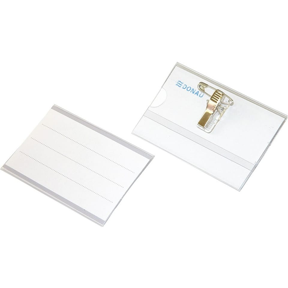 Identyfikator Donau 57x90mm z klipsem i agrafką transparentny