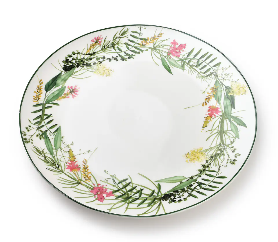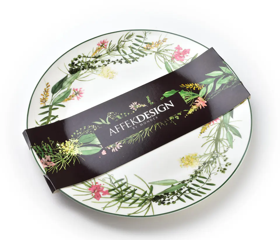 Talerz obiadowy porcelanowy z kolekcji IDYLLIC marki AFFEKDESIGN. Seria ta przedstawia wiosenną ziołową zastawę, która wniesie ciepło i radość do Twojej jadalni!Mozna uzywa w mikrofali i kuchence mikrofalowej. Wykonany z porcelany New Bone China.wymiary: 26,9xh2,6cmwaga: 525g