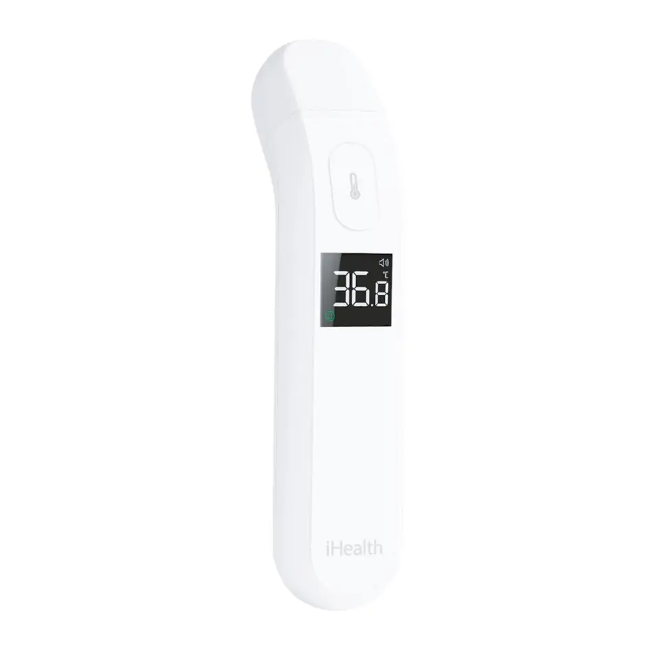 Termometr na podczerwień No-Touch iHealth PT2L - Funkcje: - Temperatura na czole. - Wyświetlacz LCD. - Łatwy w użyciu. - Pomiar w 1 sekunde. - Alarm gorączki. - Tryb ° C lub ° F. - Automatyczne wyłączanie. - Wskaźniki stanu temperatury: - zielony (T