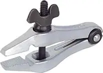 Wykonanie: ramiona z bardzo wytrzymałej, chromowo-stopowej stali narzędziowej, z wymiennym wrzecionem z gwintem trapezowym, bezpieczne prowadzenie przegubu i zabezpieczona przed zagubieniem, zwijana sprężyna rozporowa. Szczęki z małą rozpiętością i nakrętką motylkową.