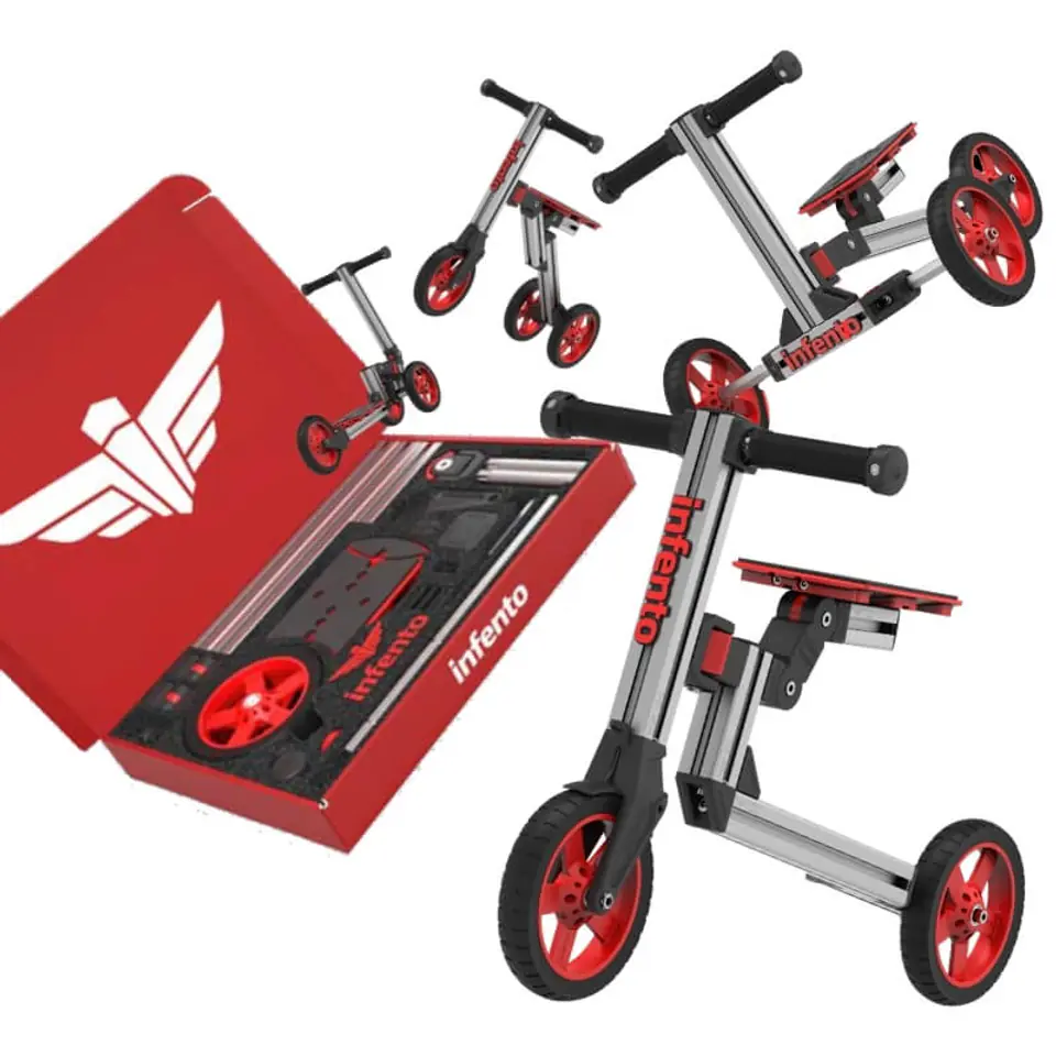 Projekt zestawów modułowych stworzony przez Infento wspiera zrównoważony rozwój – zamiast kupować kolejne zabawki czy rowerki, wystarczy zmodyfikować istniejący.