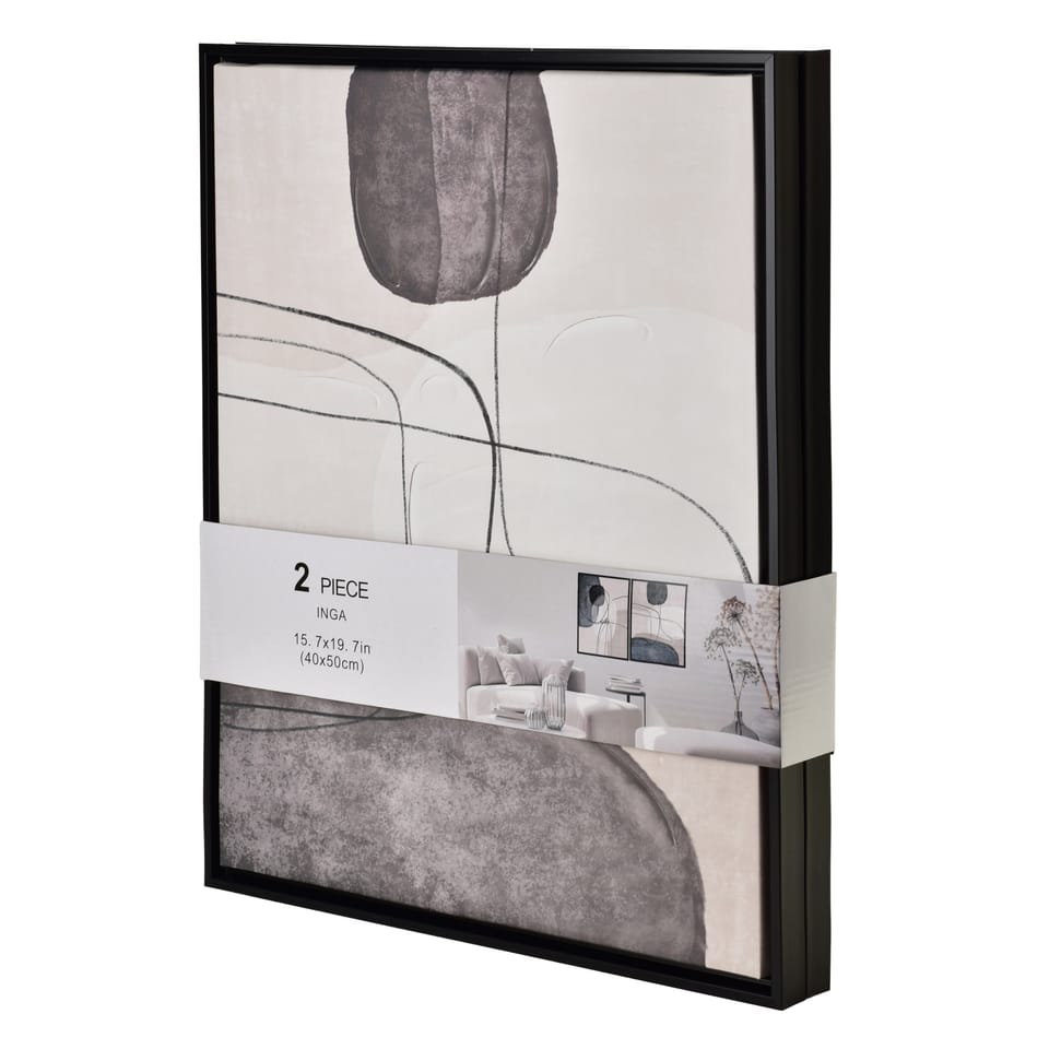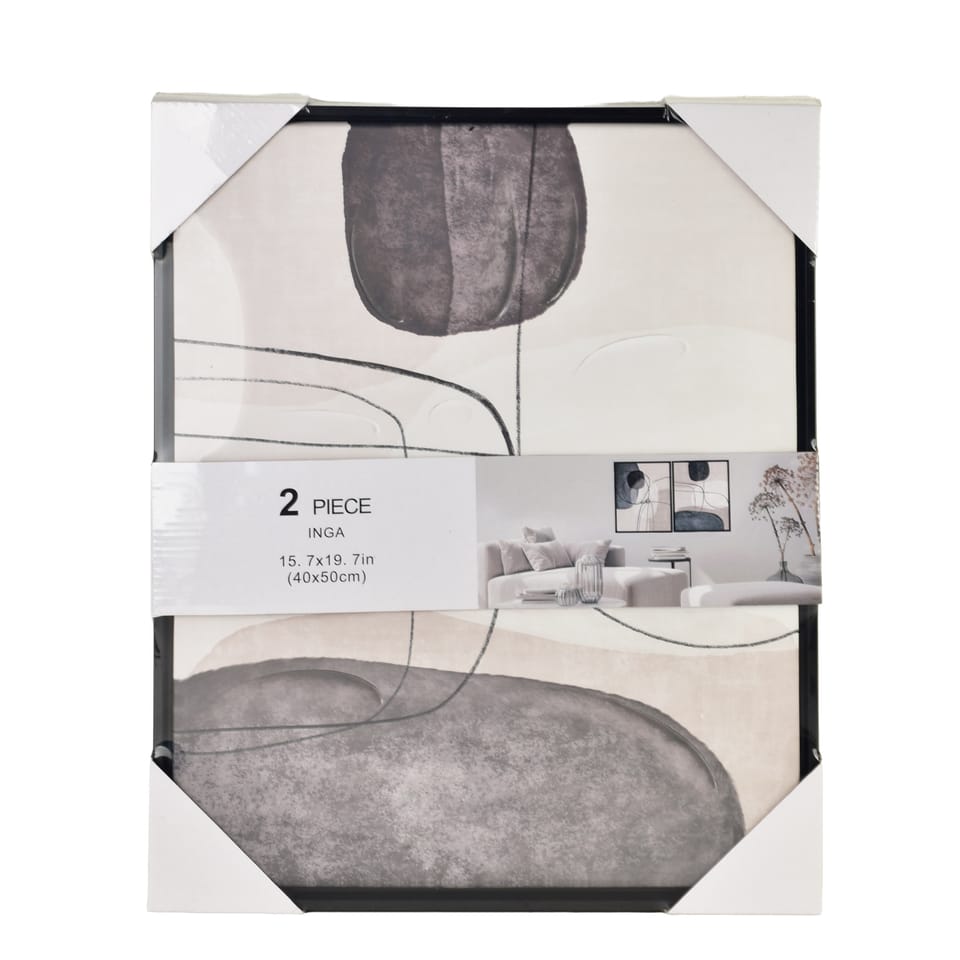 INGA Komplet 2 obrazów 40x50cm modern.INGA to wyjątkowy komplet dwóch obrazów o wymiarach 4050 cm, utrzymanych w nowoczesnej, abstrakcyjnej stylistyce. Kompozycje w odcieniach czerni, bieli i beżu tworzą harmonijną całość, emanującą elegancją i wyważonym minimalizmem. Każdy z obrazów oprawiony jest w czarną ramę, która podkreśla ich graficzny charakter i nadaje im wyrazistości. Zestaw stanowi spójną dekorację, jednak dzięki przemyślanej kompozycji obrazy mogą być również eksponowane osobno, zachowując pełnię estetycznego wyrazu. Komplet INGA doskonale sprawdzi się w nowoczesnych, stylowych wnętrzach, wprowadzając do nich harmonię, głębię i artystyczny akcent.