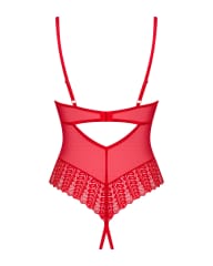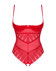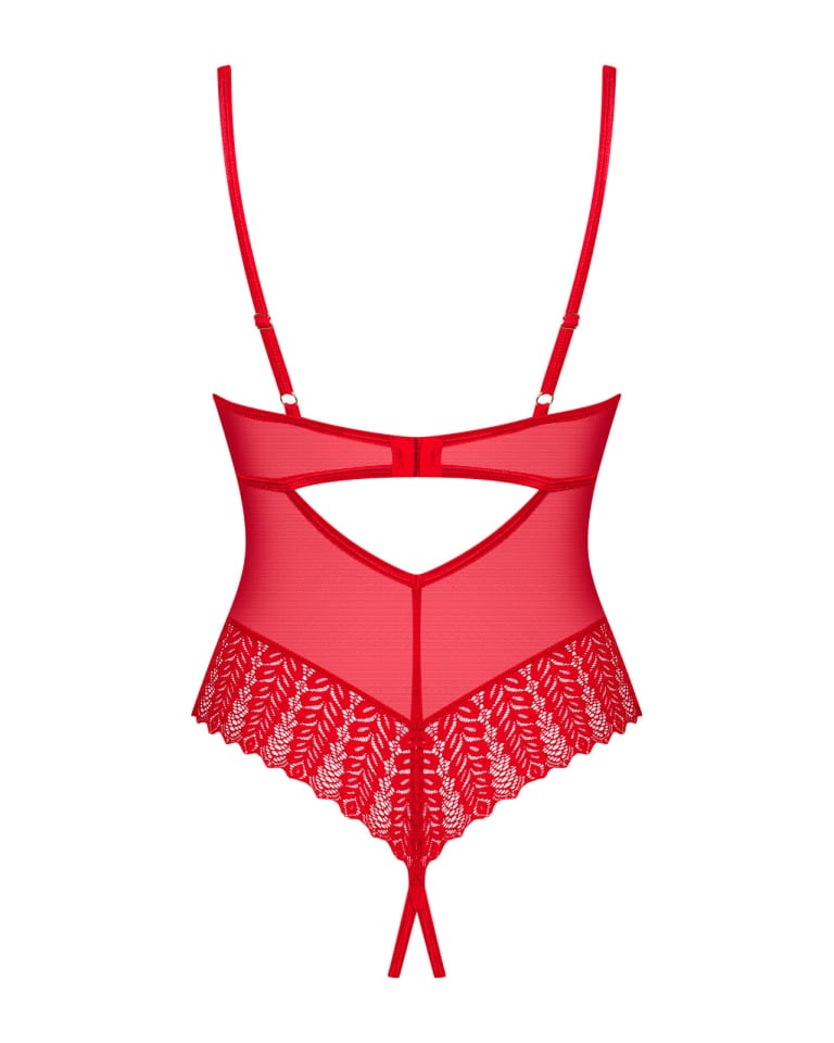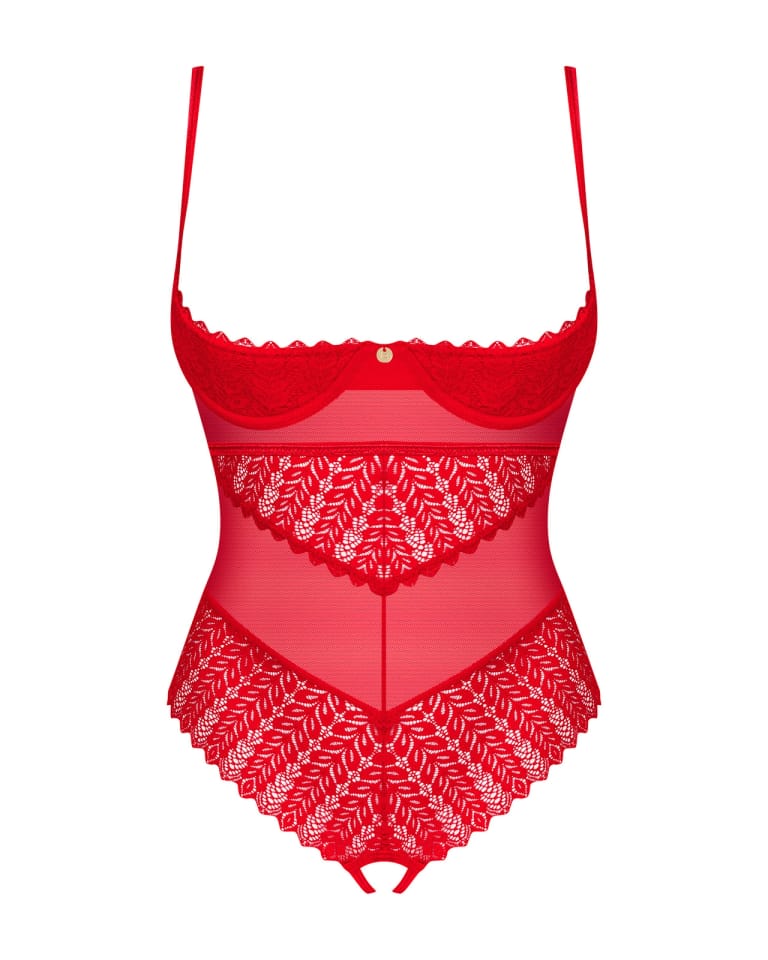 Jeżeli pragniesz zrobić oszałamiające wrażenie na swojej drugiej połówce, to mamy dla Ciebie propozycję idealną! Ociekające seksapilem czerwone body z otwartym krojem będzie kusząco otulać ciało i podkreśli wszystkie atuty Twojej kobiecości. Całości dopełni intrygująca koronka, dodająca kokieterii. Rozkoszne momenty są na wyciągnięcie ręki!Poznaj więcej szczegółów:- body w czerwonym kolorze- otwarty krój – odważny design- seksowna koronka – przyciąga wzrok- kilkustopniowe zapięcie i regulowane ramiączka to gwarancja idealnego dopasowania- usztywniane miseczki z fiszbinami – doskonale podkreślą wygląd piersi- połyskująca zawieszka – intrygujący detal- przyjemny w dotyku materiał – dla Twojego komfortu (90% polyamide, 10% elastane)