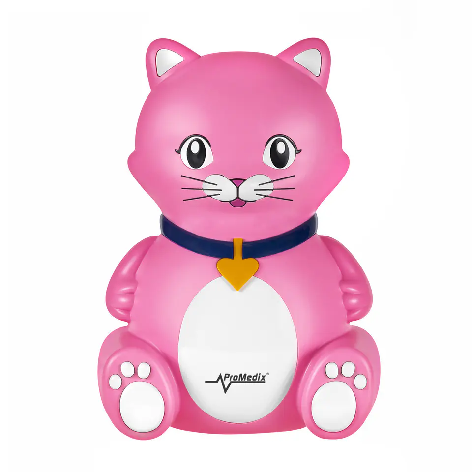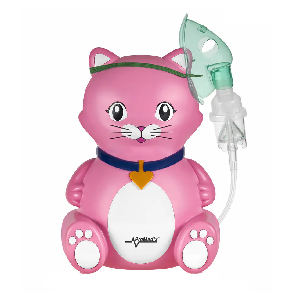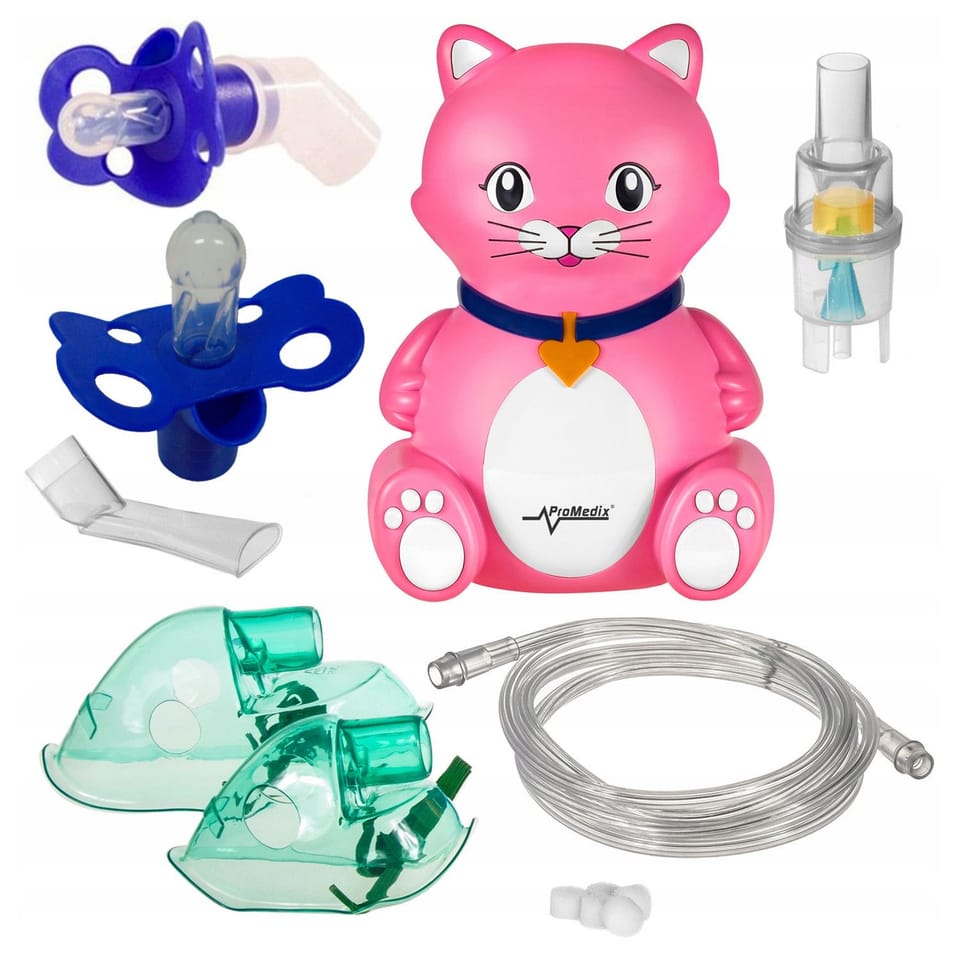 Wszystko dla Twojego dzieckaPrzedstawiany inhalator pomaga skutecznie dostarczać lek we wdychanym powietrzu do dotkniętych chorobą regionów układu oddechowego, Można go również używać w celach zapobiegawczych i diagnostycznych.Dzięki smoczkowi do inhalacji możesz wyeliminować stres u niemowlęcia podczas aplikacji leku, co sprawia, że cała operacja staje się bardziej skuteczna i pozwala uniknąć rozdrażnienia dziecka.Uniwersalna konstrukcja:Inhalator/nebulizator Promedix® z kompresorem tłokowym jest przystosowany do pracy ciągłej, dzięki czemu może być stosowany przy przewlekłych chorobach.Został zaprojektowany z myślą o najmłodszych. Kształt inhalatora (kotek) sprawi, że dziecko polubi inhalacje.Jest to więc profesjonalny wyrób medyczny ukryty w przystępnej dla maluchów obudowie. Można nim podawać antybiotyki i leki oskrzelowe. Jest całkowicie bezpieczny dla dziecka, dzięki specjalnie opracowanym zaokrąglonym kształtom, bez ostrych krawędzi.Dodatkowo obudowa jest izolowana termicznie i została wykonana z najwyższej jakości tworzywa, spełniającego rygorystyczne standardy bezpieczeństwa.