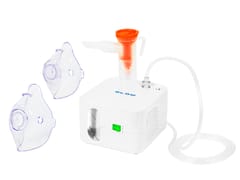 Medyczny nebulizator kompresyjny do domowych inhalacji, skutecznie rozpyla lek w postaci drobnych cząsteczek (1–5 µm), docierających do dolnych dróg oddechowych. Cichy (≤65 dB), wydajny i łatwy w użyciu. W zestawie: kompresor, zestaw nebulizatora, przewód powietrzny, maska oraz 5 zapasowych filtrów. Specyfikacja: