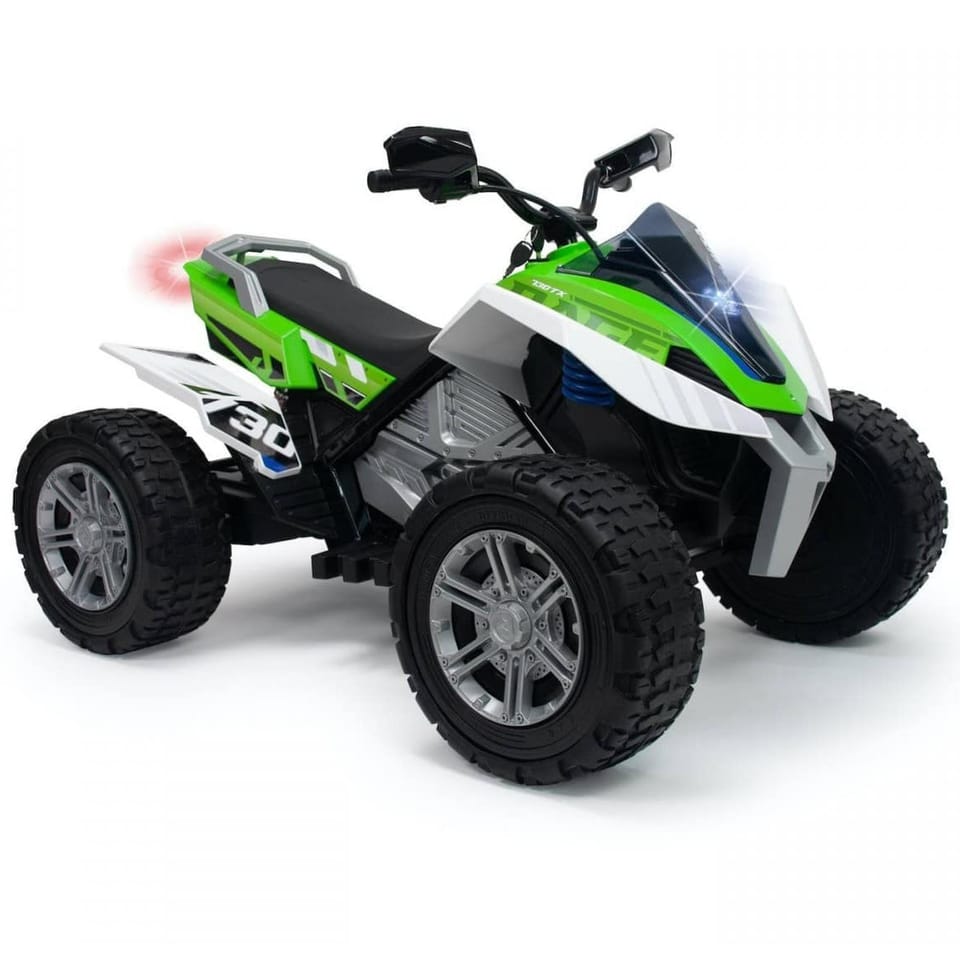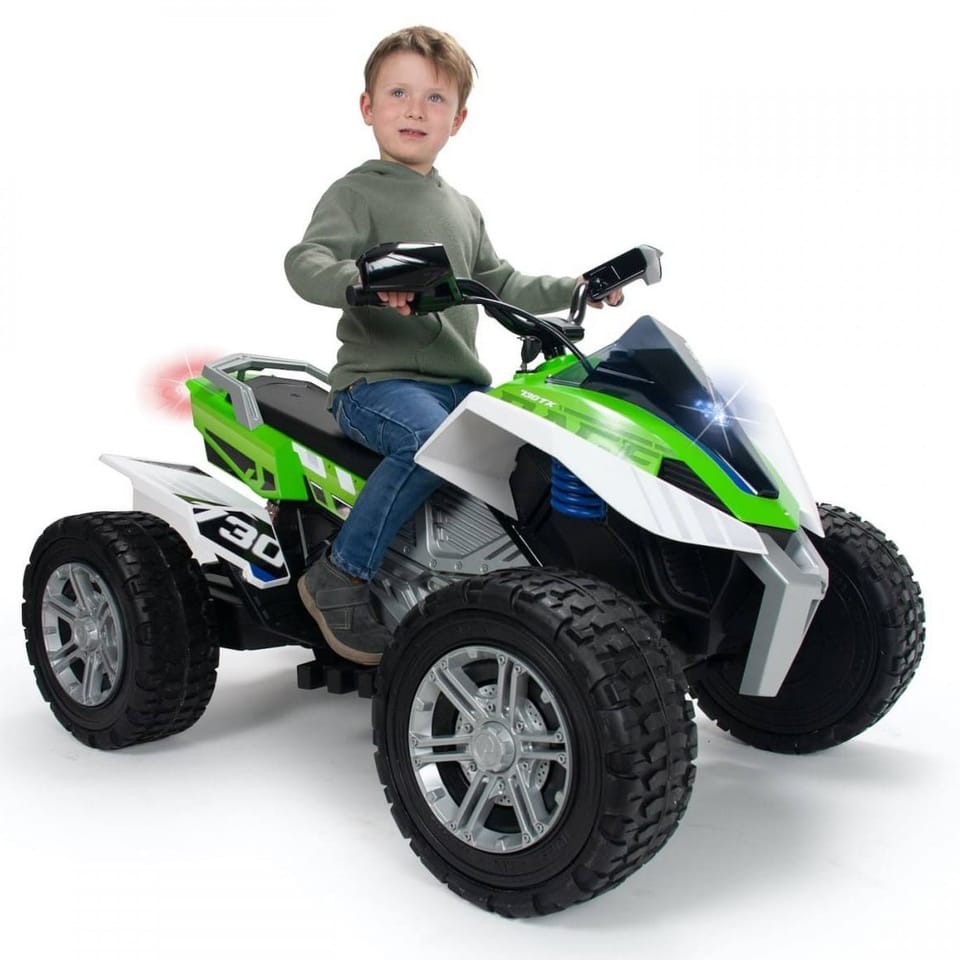 Elektryczny Quad Rage od hiszpańskiej firmy produkującej pojazdy elektryczne INJUSA to idealna propozycja dla dzieci lubiących adrenalinę od 6 roku życia. Pojazd dzięki szerokim kołom jest bardzo stabilny, a gumowy bieżnik zapewnia dużą przyczepność i komfort jazdy po różnych podłożach. Moc akumulatora 24V zapewnia jazdę z prędkością do 11km/h.
