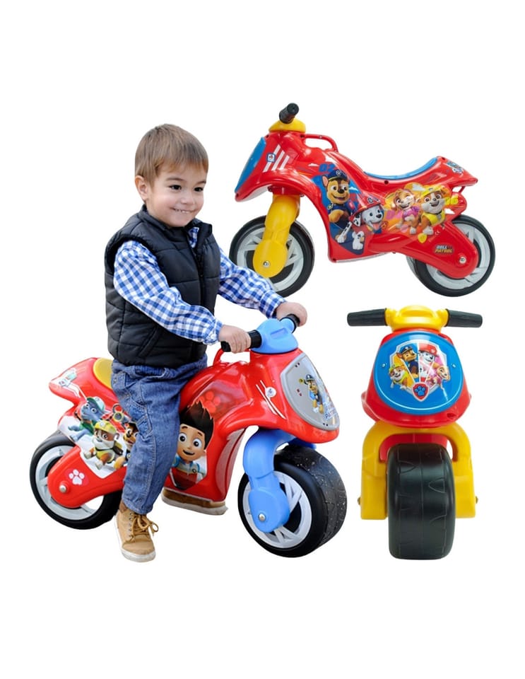 - - jeździk motor w kolorze czerwono-niebiesko-żółtym na licencji Psi Patrol dla dzieci od 18 miesiąca życia,