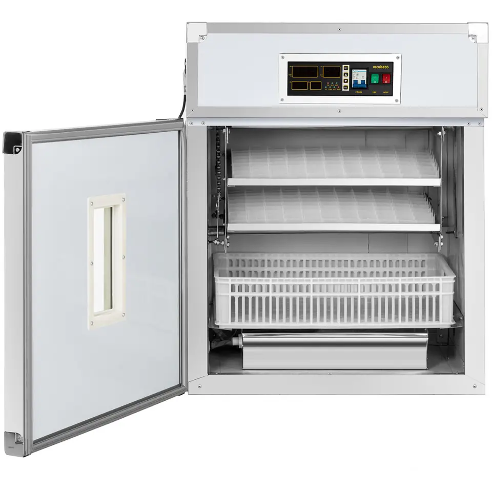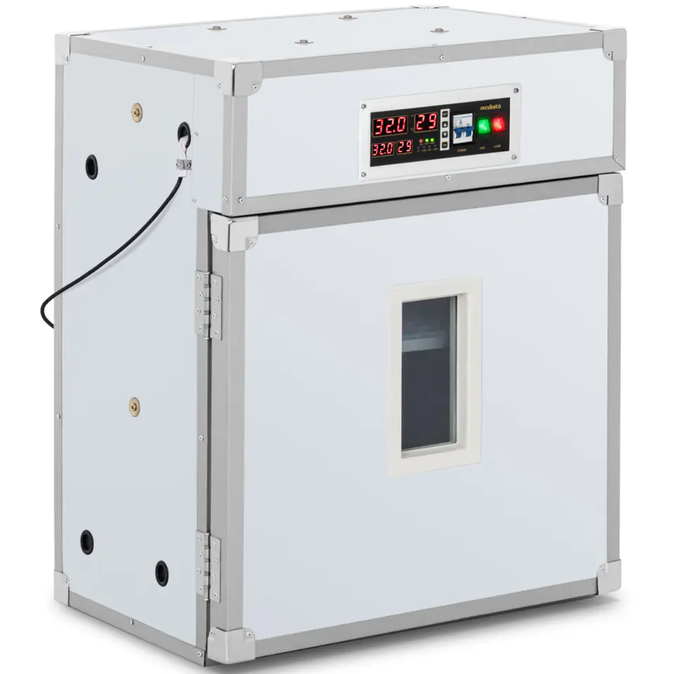 Urządzenie wyposażone zostało w silnik o mocy 250 W oraz panel sterowania z wyświetlaczem, który pozwala kontrolować parametry procesu. Inkubator posiada automatyczną kontrolę warunków w komorze, system rotacji jajek oraz ustawienia optymalnych poziomów wilgotności i temperatury w zakresie 30 - 39,5°C.